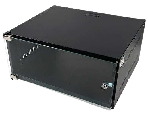 Gabinete Rack Mural 4UR x 19″ x 400mm Celosias Laterales Puerta Vidrio Templado Chapa con Llave