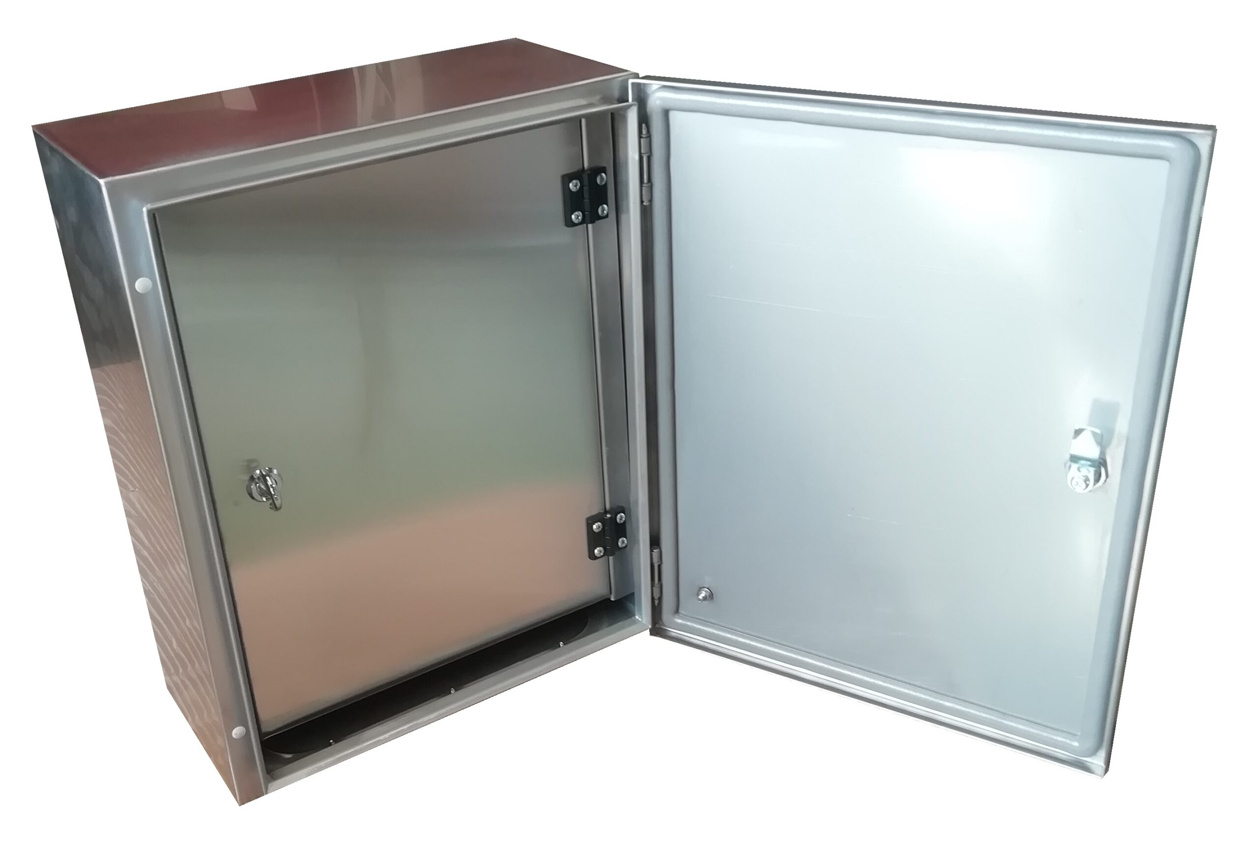 TABLERO EN ACERO INOXIDABLE CALIDAD 304 IMPORTADO CON PLACA DE MONTAJE GALVANIZADA Y CUBRE COMPONENTES.